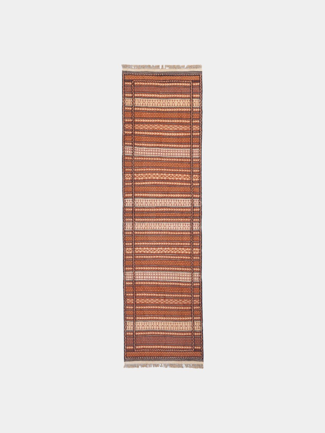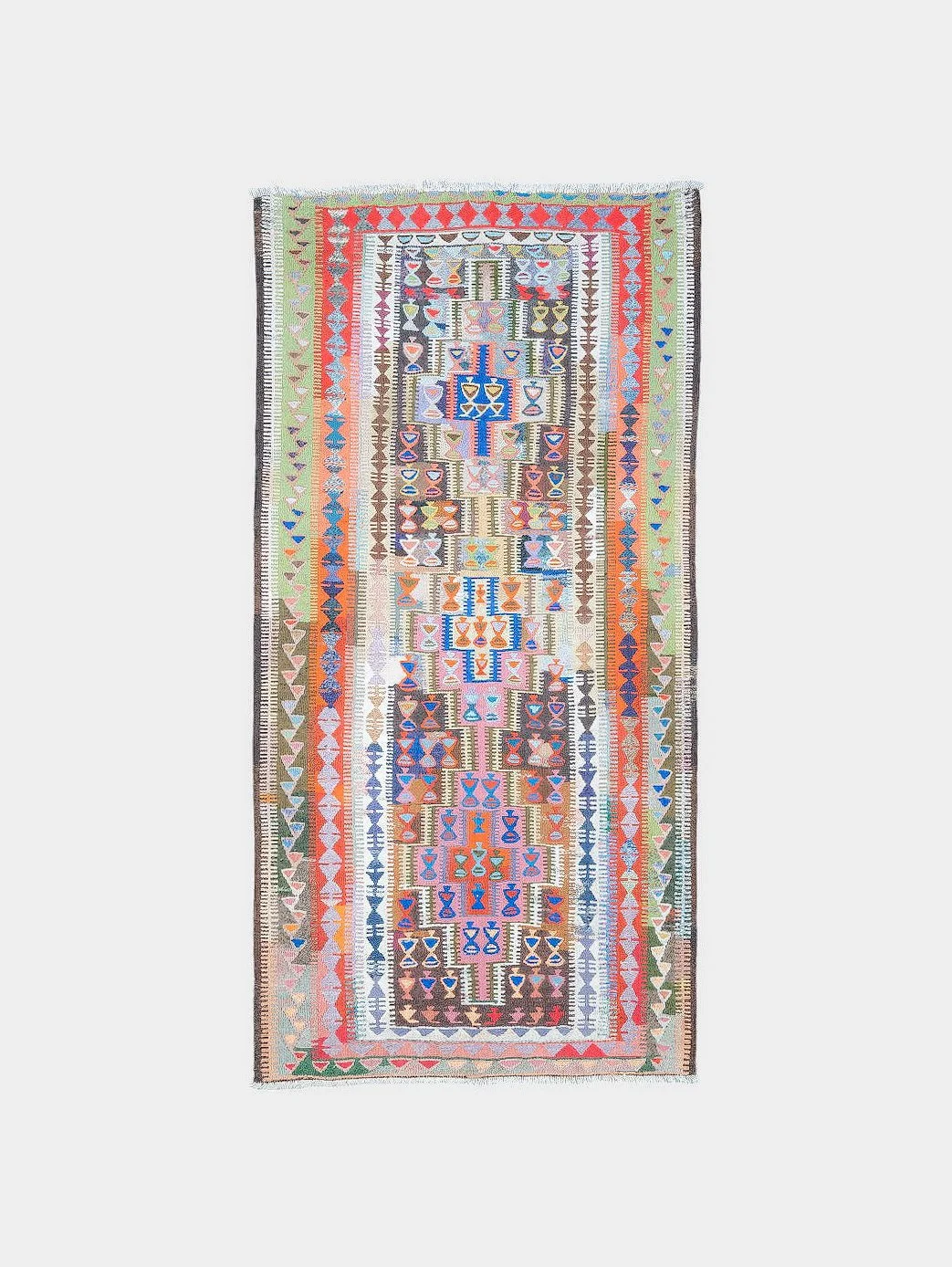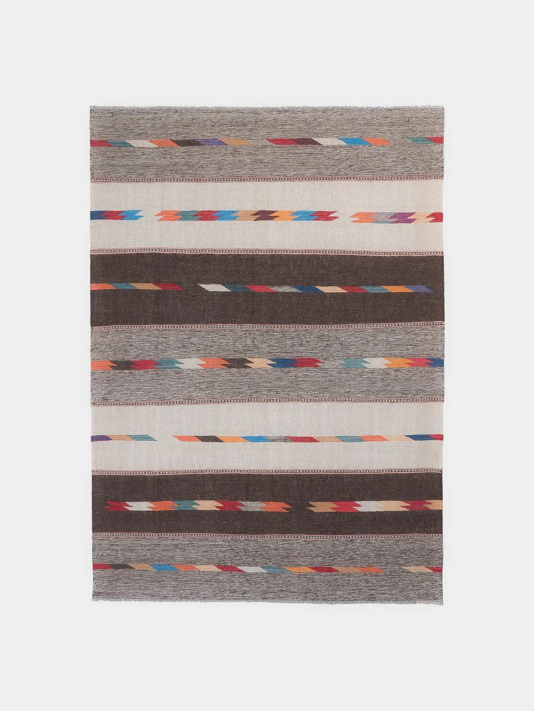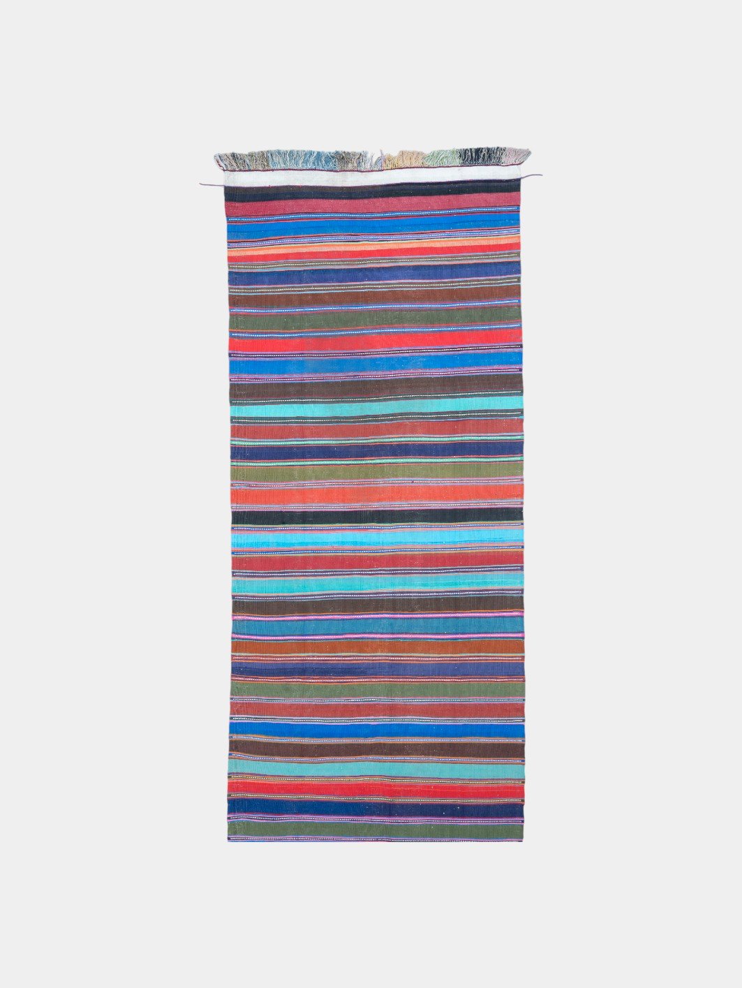 Kilims are produced by tightly interweaving the warp and weft strands of the weave to produce a flat surface with no pile. Kilim weaves are tapestry weaves, technically weft-faced plain weaves, that is, the horizontal weft strands are pulled tightly downward so that they hide the vertical warp strands.