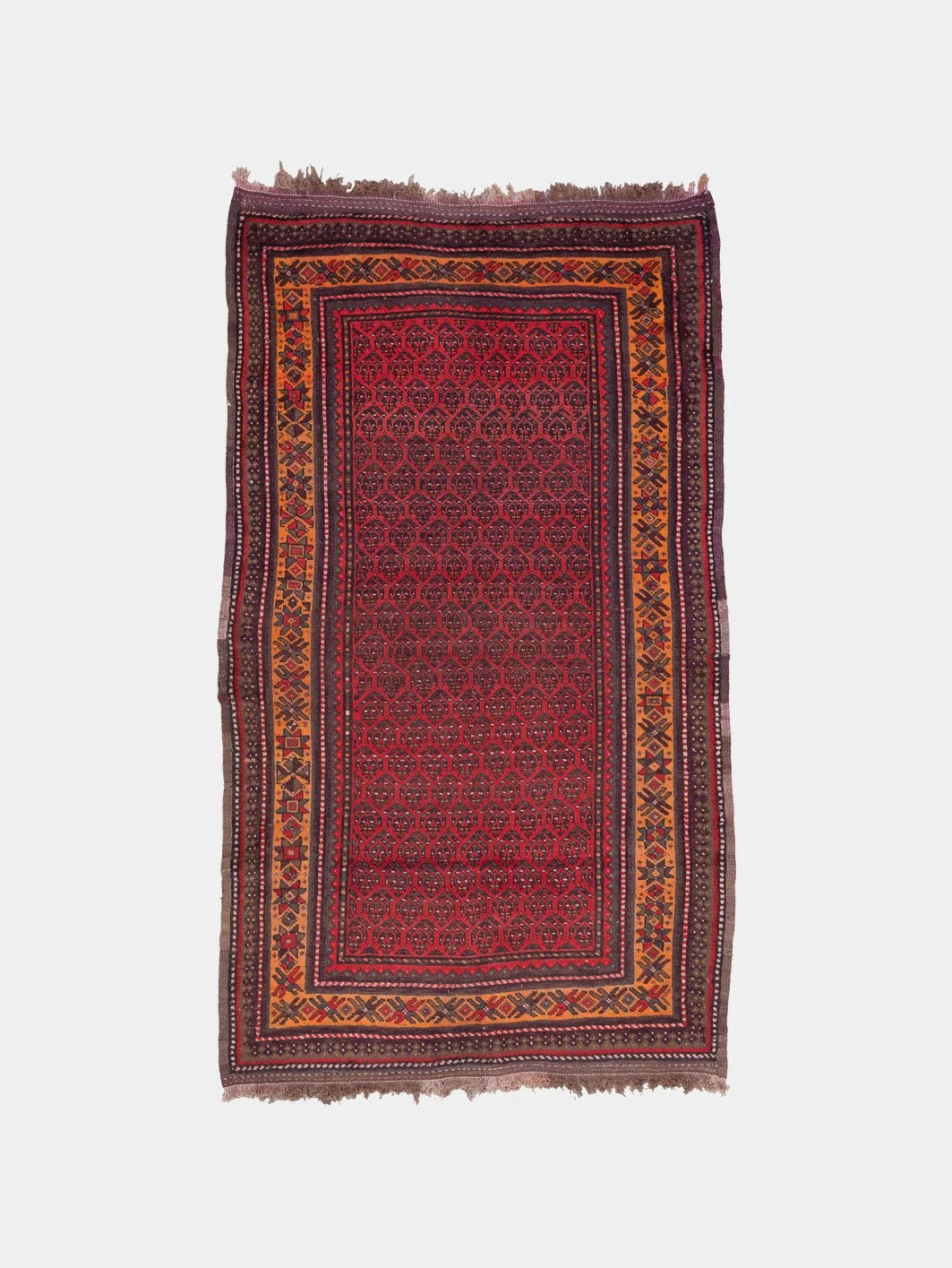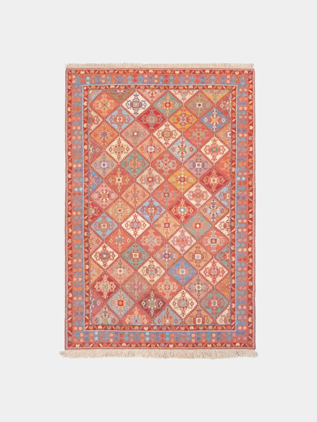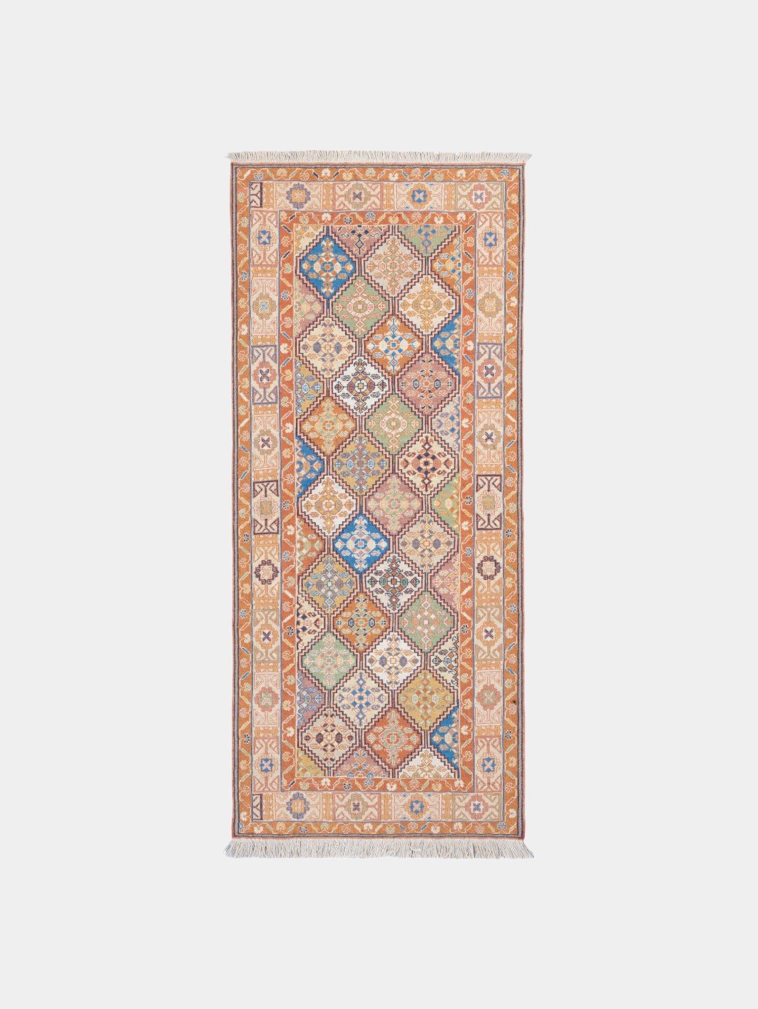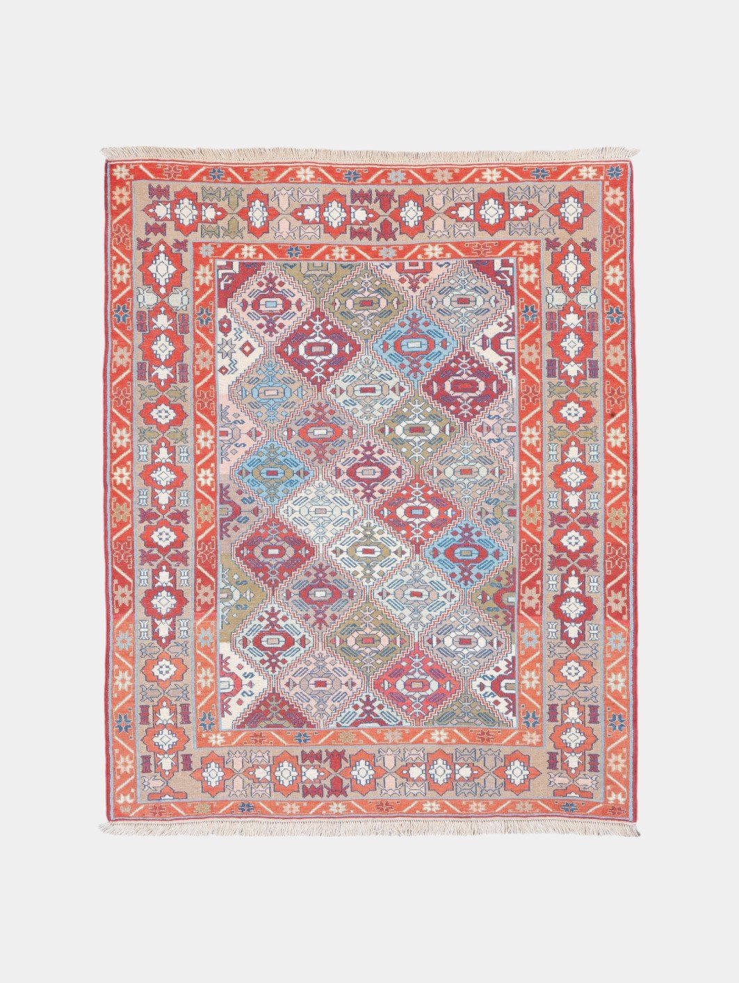 Kilims are produced by tightly interweaving the warp and weft strands of the weave to produce a flat surface with no pile. Kilim weaves are tapestry weaves, technically weft-faced plain weaves, that is, the horizontal weft strands are pulled tightly downward so that they hide the vertical warp strands.